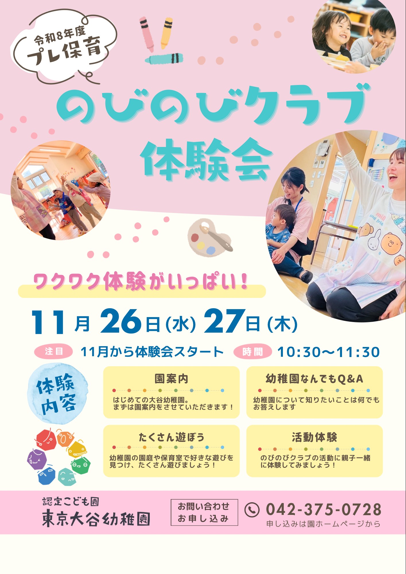 令和8年度 プレ保育「のびのびクラブ」見学・体験会がはじまります